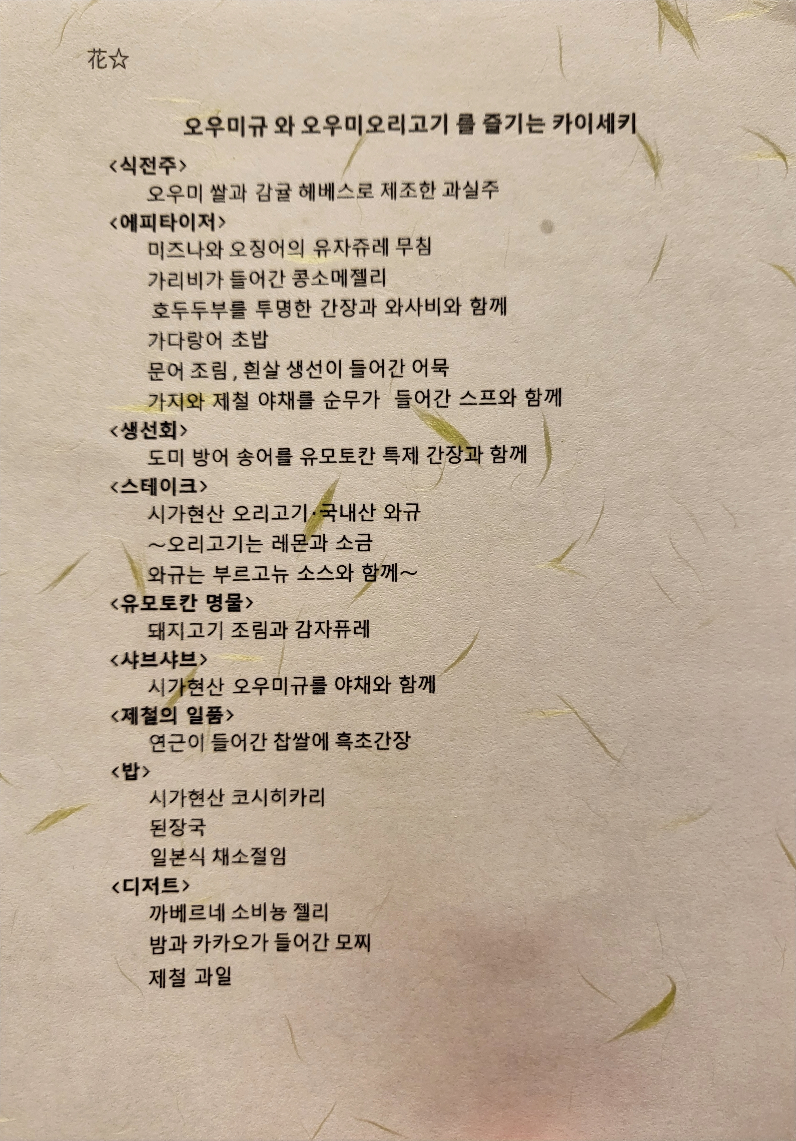 가이세키를 이용하신다면 다른 음식은 딱히 필요없을 듯 합니다.. 필요하다면 술정도 .. ?ㅎㅎㅎ