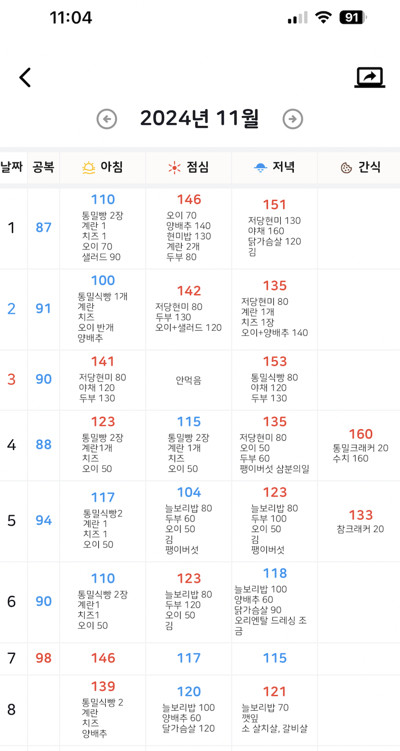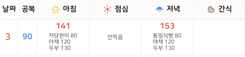 저는 저녁에 좀 더 튀는 편이라 점심, 저녁을 나누어 적어보았습니다.