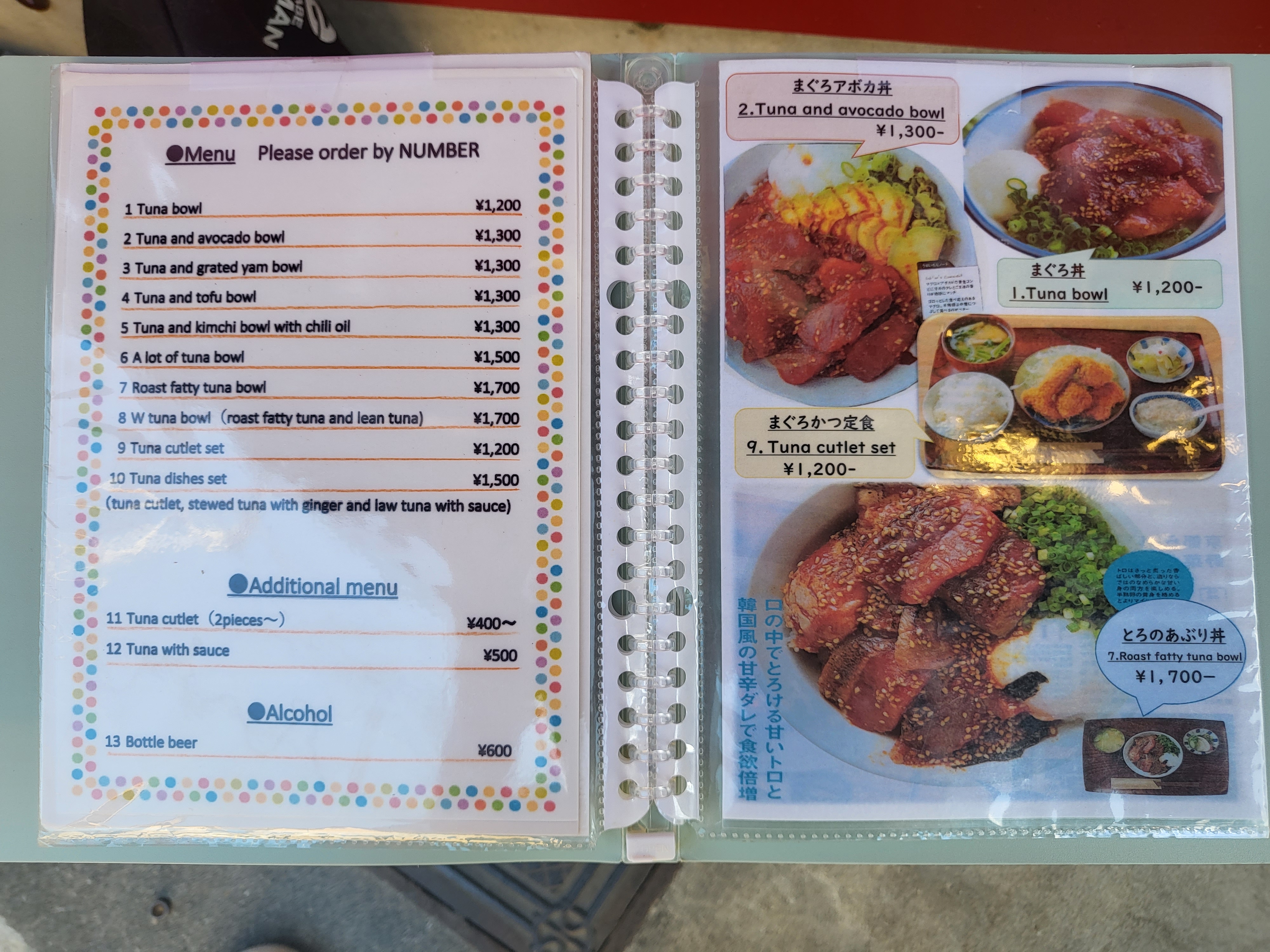 저희는 두명 다 6번 아주 많은 참치 덮밥을 먹고 싶었는데, 아쉽게도 6번은 1명만 먹을 수 있다고 하여 6번과 7번을 시켰습니다.
