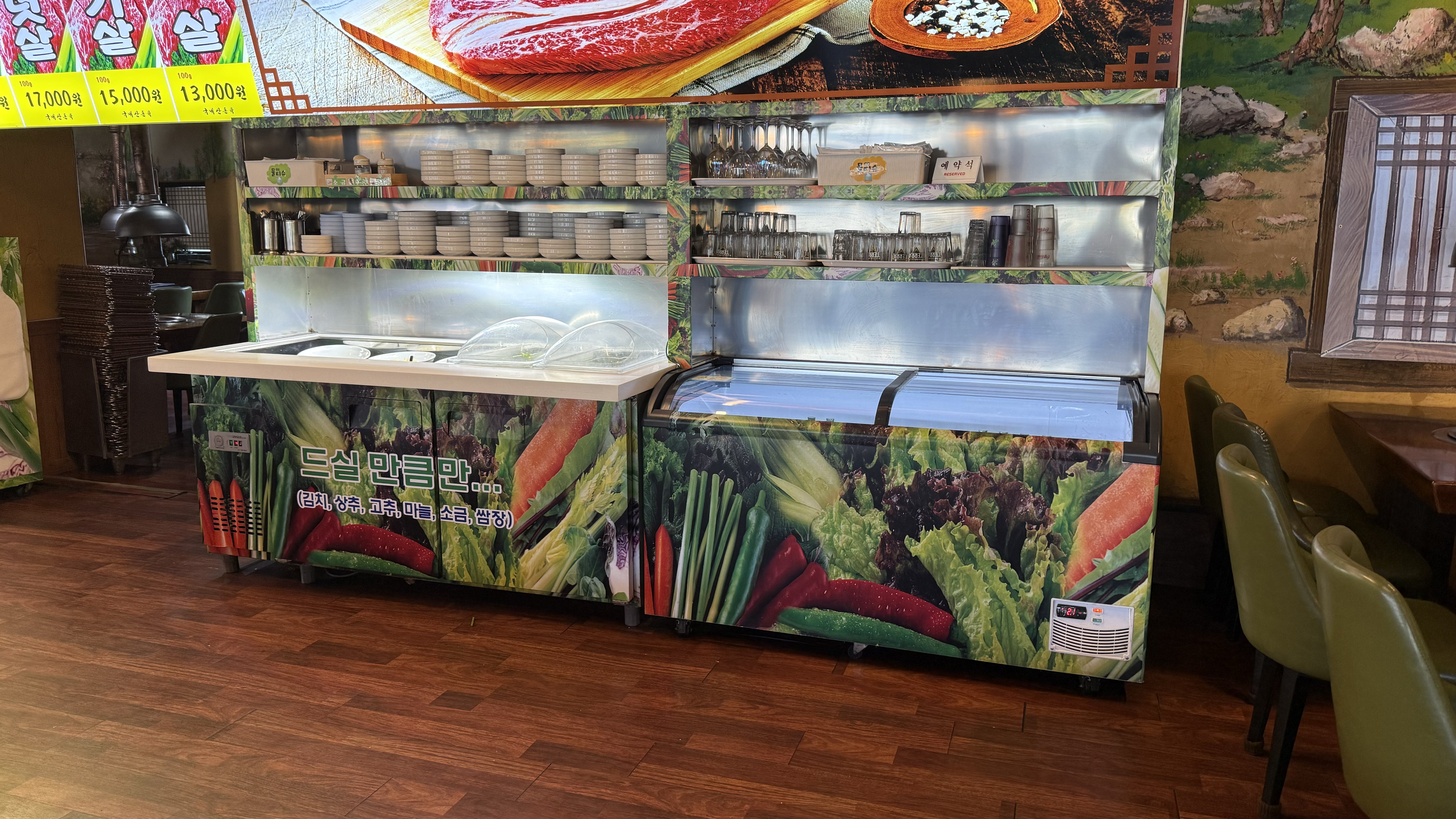 나머지 쌈장, 쌈채소, 마늘 등은 셀프바에서 직접 가져다 먹을 수 있게 되어있었습니다.